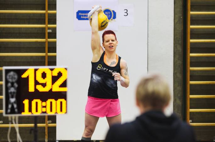 Sari pystyi lopulta nostamaan SM-kisoja edeltävällä viikolla kisatahdilla 22 kilon kahvakuulalla sarjaa, joten tiesin viimeistään, että lavalla 20 kiloinen menee 120 toistoon. Nopeampi tahti olisi vaatinut tekniikkaan muutoksia mutta siihen ei nyt ollut aikaa. Enkä olisi siihen lähtenytkään vaan kuula olisi suosiolla ollut 24 kiloa.