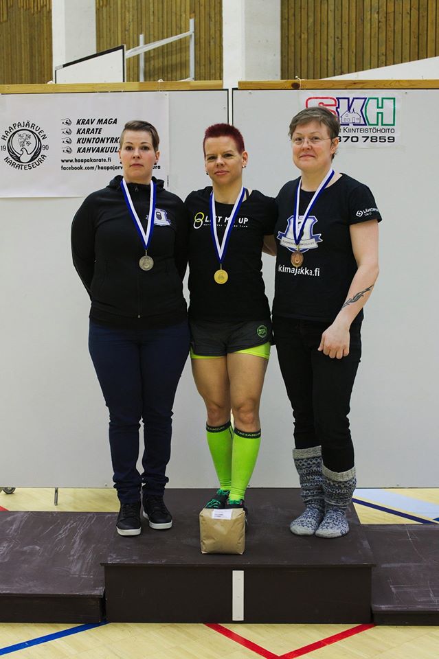 Hämeenlinnassa saimme Jyrkiltä lisää opastusta mm. atlaskiven nostoon sekä tukkipunneruksen tekniikkaan. Nummelassa kilpailtiin viime viikonloppuna jo sisätiloissa ja täytyy sanoa, että enemmän sain itsestäni irti ulkona Sysmässä vaikka CrossFit Central Nla:n sali olikin mainio mesta. Sysmässä oli myös “painavammat” lajit. Nummelassa oli aloittelijoinakin jo niin vahvoja naisia, että esim. farmarikävely 60 kg per käsi meni parhaimmilla juoksukilpailuksi. Pienellä tekniikkatreenillä akselitangonkin saisi paremmin haltuun, nyt nostin vain 40 kiloa suorille käsille maasta. Allemeno sujuu, rinnalleveto tuolla tangolla ei ilman ristiotetta.