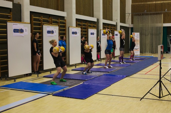 Sivusilmällä näin kuinka Minna, ehkä jopa ihan uudella ponnekkuudella kuin hetki sitten, teki tempauksia. Kun katseemme kohtasivat niin näytin tsemppipeukkua ja sanoin hiljaa, puolittain itsekseni: “Todella hyviä toistoja, todella hyviä.” Enkä fuskannut yhtään, Minna osaa teknisesti nostaa painavallakin kuulalla jo kelpotempauksia.