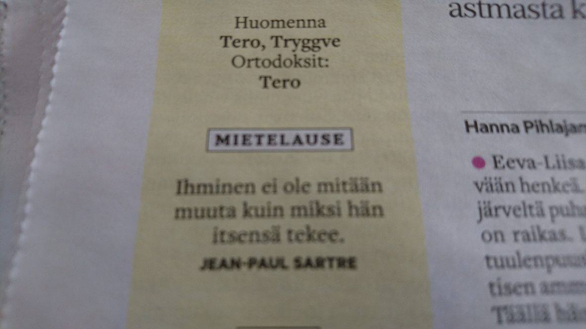 Melkein Teron päivänä löytyi viisaan miehen lause.